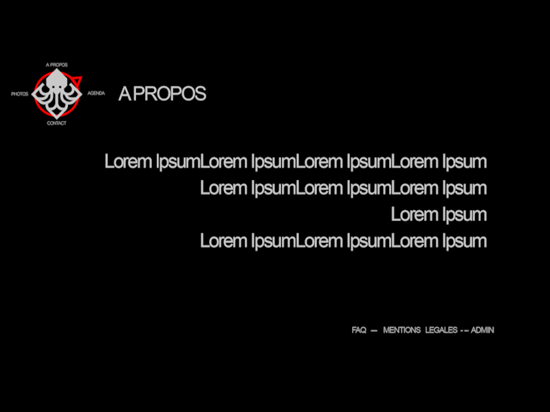 Le menu agit comme une boussole qui suit les mouvements de la souris et permet de naviguer entre les différentes pages. J'ai pu utiliser pour la première fois JavaScript lié a du CSS pour répondre à cette demande.
