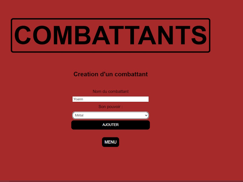 L’objectif de ce mini-projet est de concevoir une application web qui permet à l'utilisateur de créer et de sélectionner des combattants dotés de pouvoirs afin de les mettre en compétition.